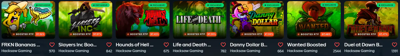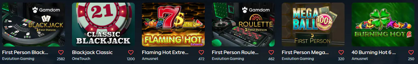 | Jeux instantanés | Crash, Aviator, Chicken, Plinko, etc. |