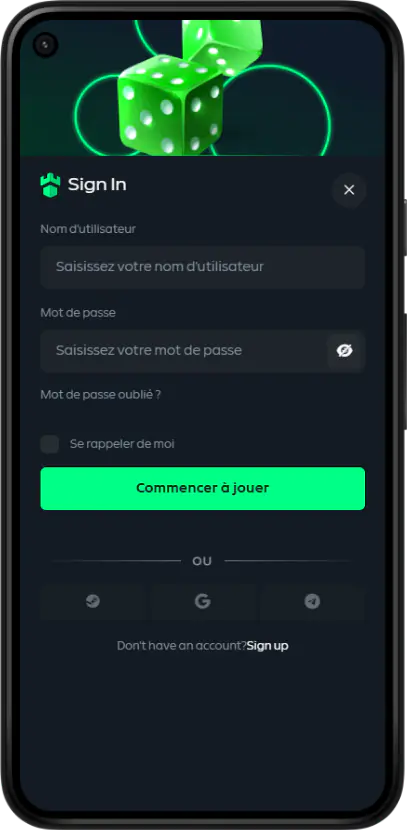 - Connectez-vous à votre compte existant ou créez-en un nouveau pour commencer à jouer.